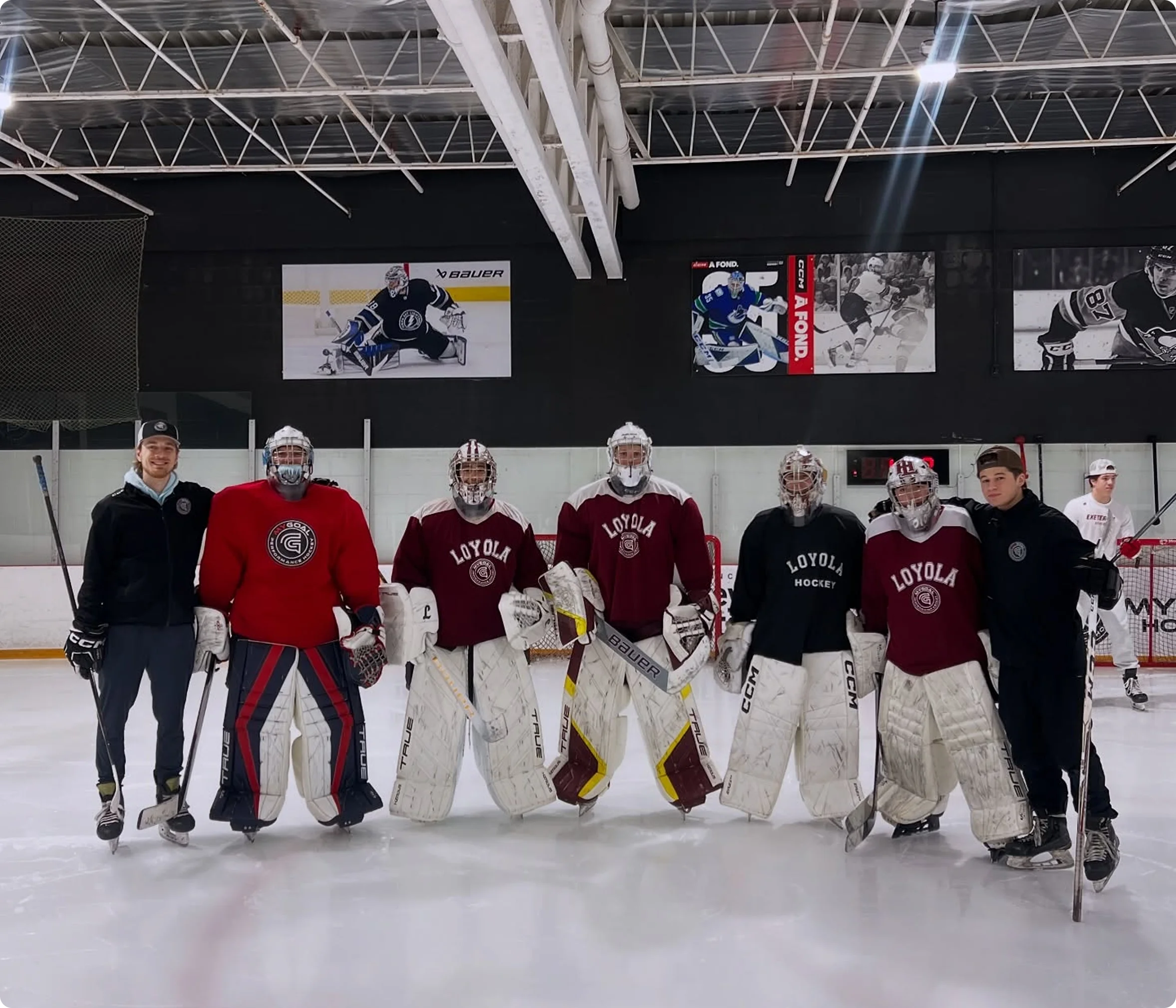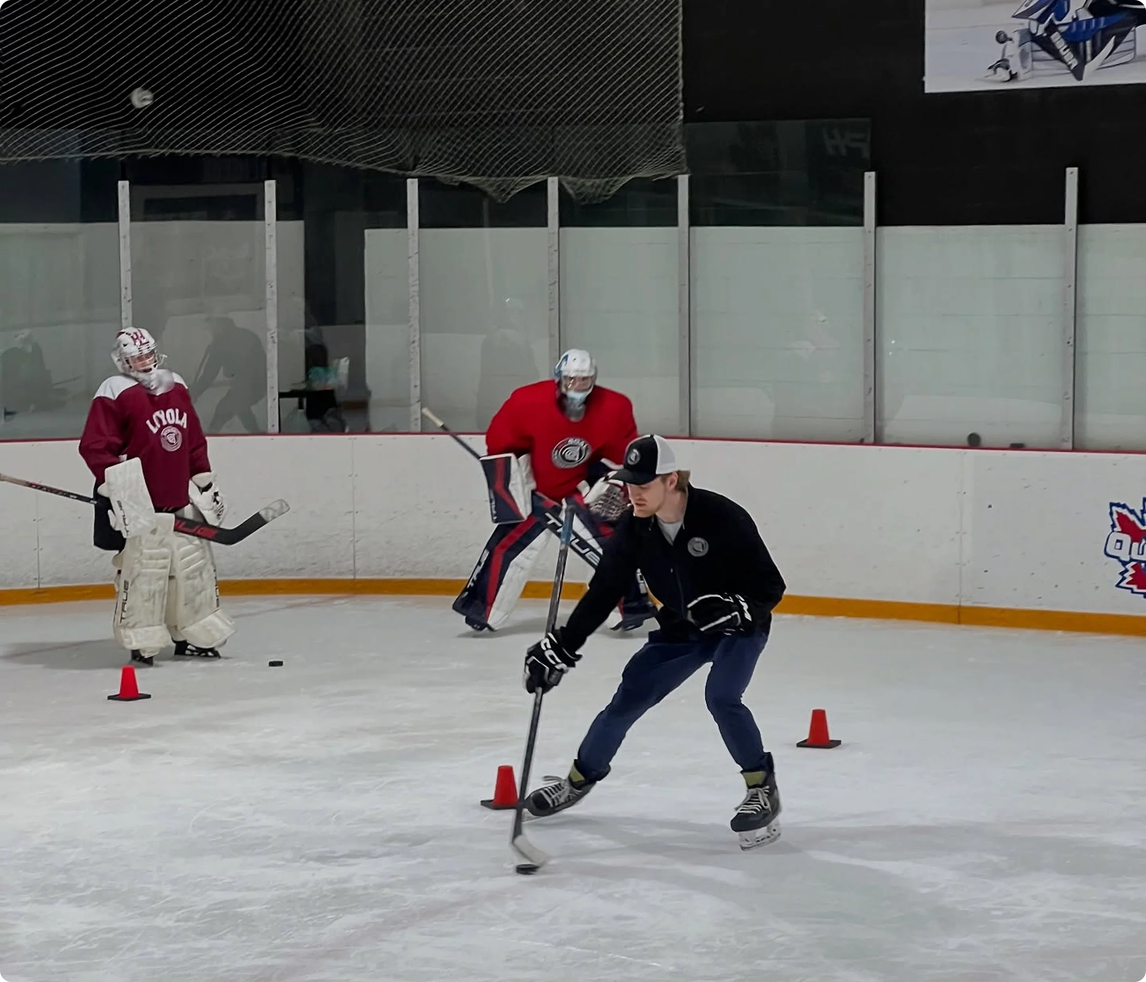 Position-specific goalie training focused on skating, positioning, tracking, controlled movement, and confidence. Sessions are structured to build strong fundamentals and repeatable habits.
